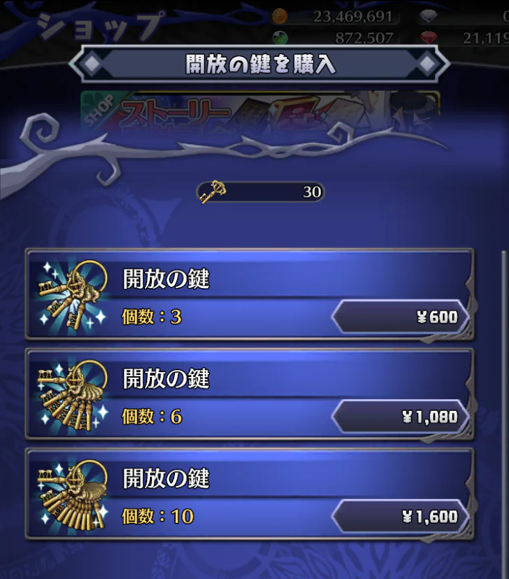 ストーリー完結記念パックはホーム画面下部のバナー、ホ ーム画面左上のおすすめ商品、またはショップ画面上部のバナーから購入できます