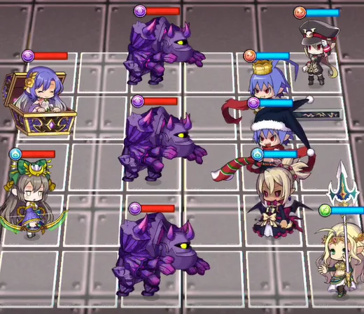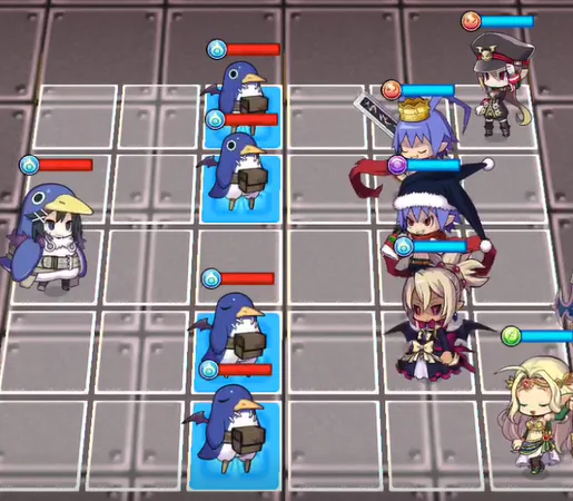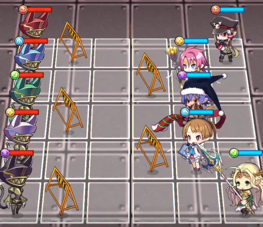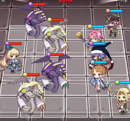 1waveの敵は最後列に味方を配置することでターンを消費することが可能(敵の位置が初期の位置の場合のみ)