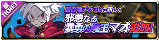 闇召喚チケットの当選キャラに★4邪悪なる暴勇の魔王マオを追加しました