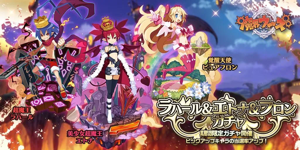 新たなピックアップガチャは初代ディスガイアの3人組がピックアップとなっています