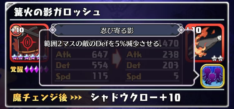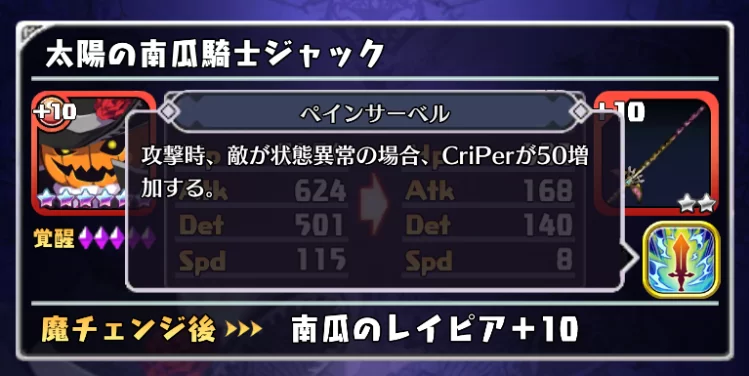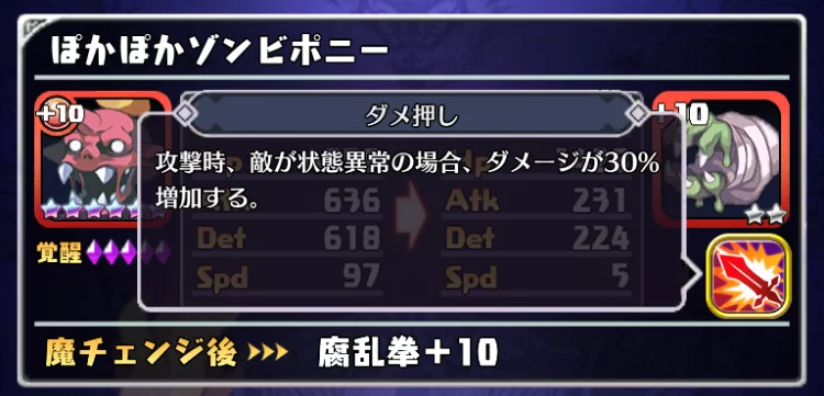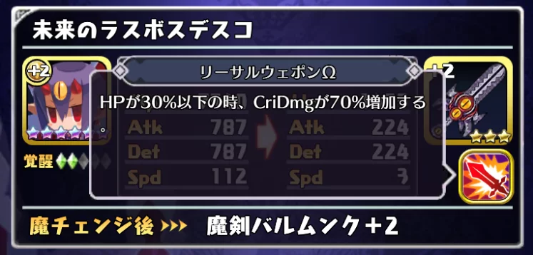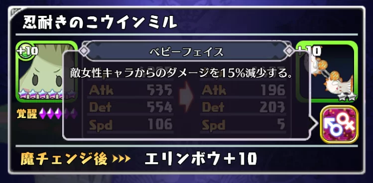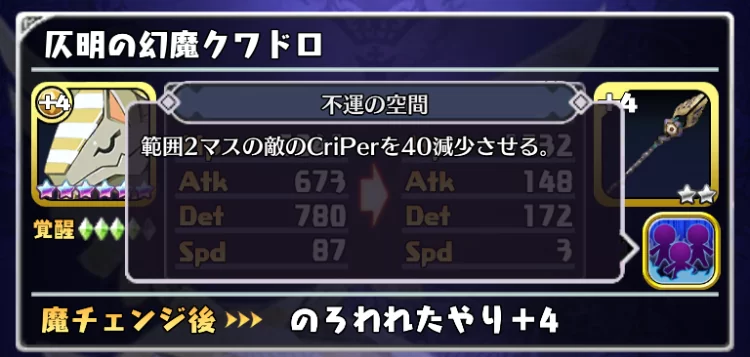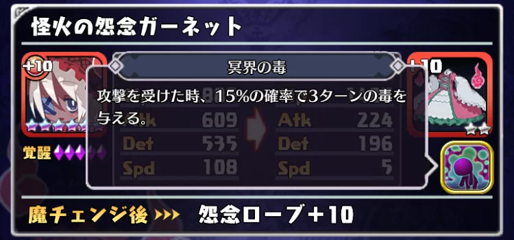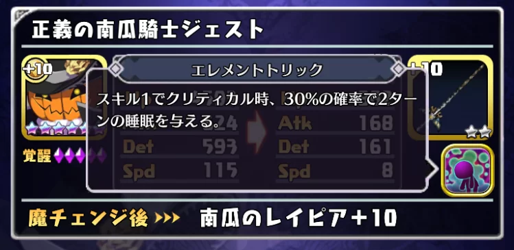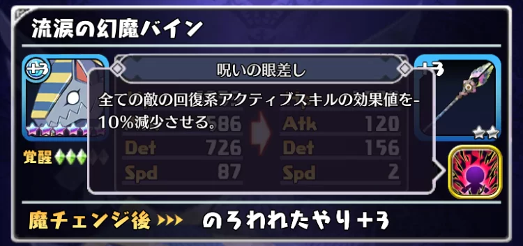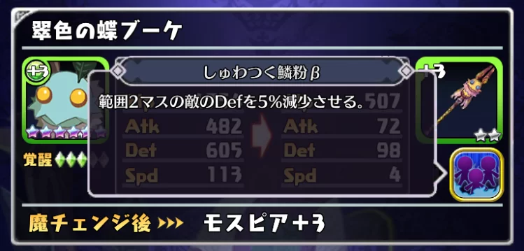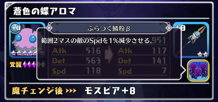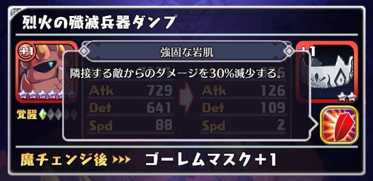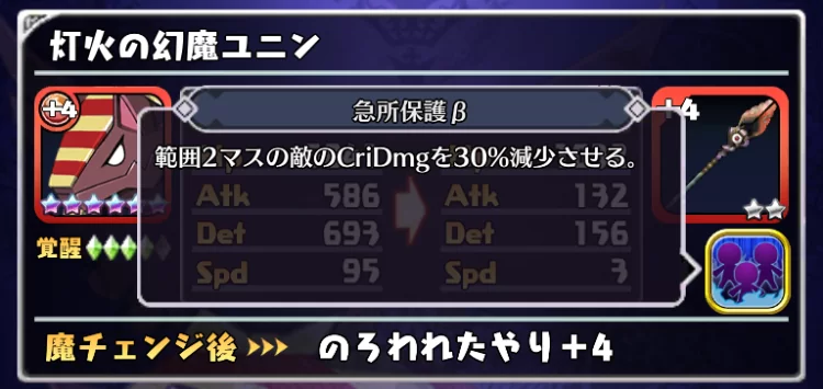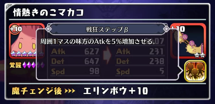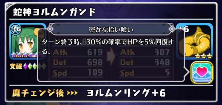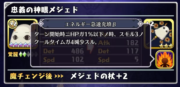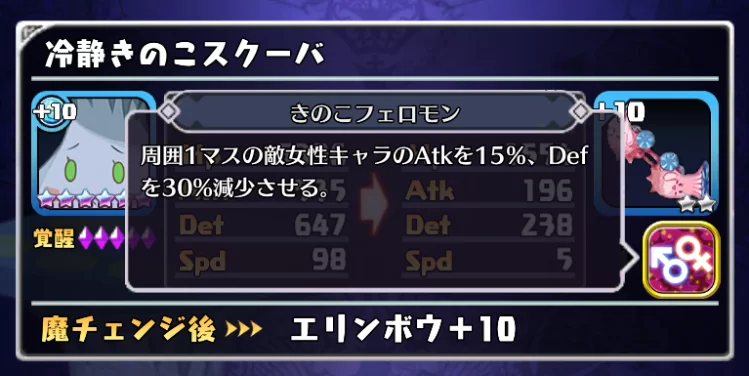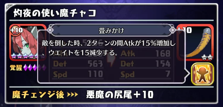 キャラによっては魔装備化することで非常に優秀なスキルを発動できるので、よく考えて魔チェンジさせるといいでしょう