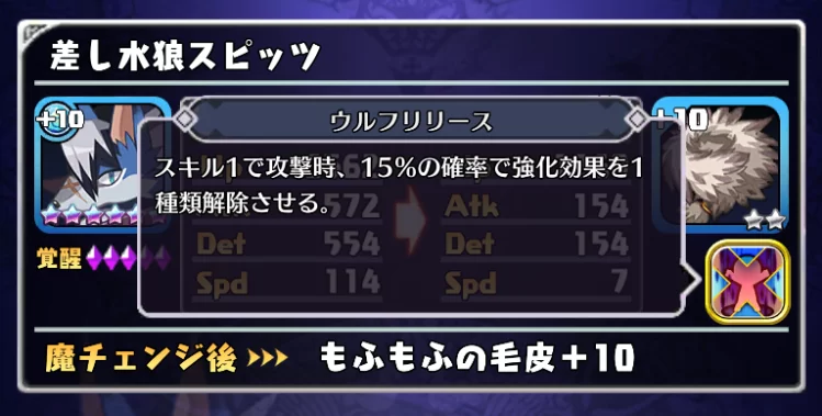 スキル1で攻撃時、15%の確率で強化効果を1種類解除させる