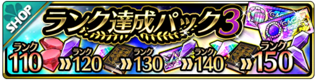 ランク達成パック3はプレイヤーランクが110・120・130・140・150になったタイミングにアイテムが貰え るお得なパックとなっています