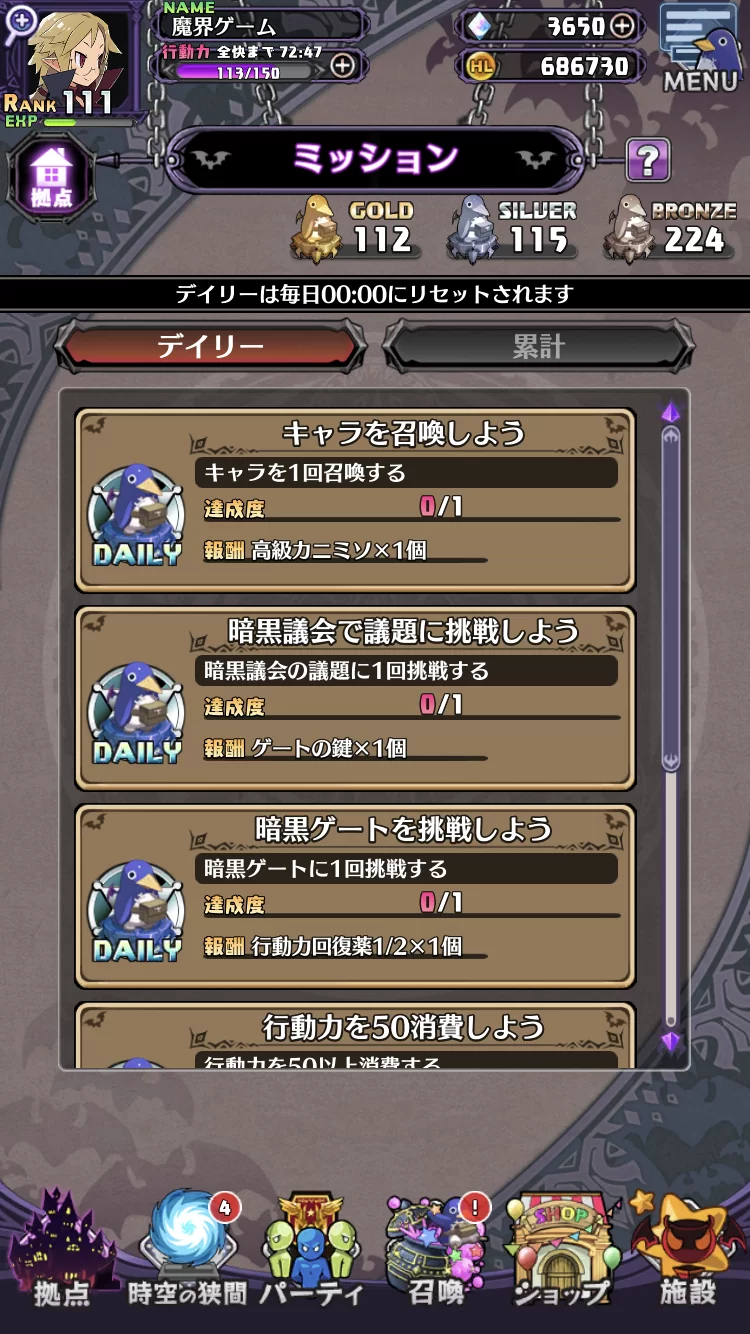 毎日リセットされるデイリーミッションは必ずこなしておきたい