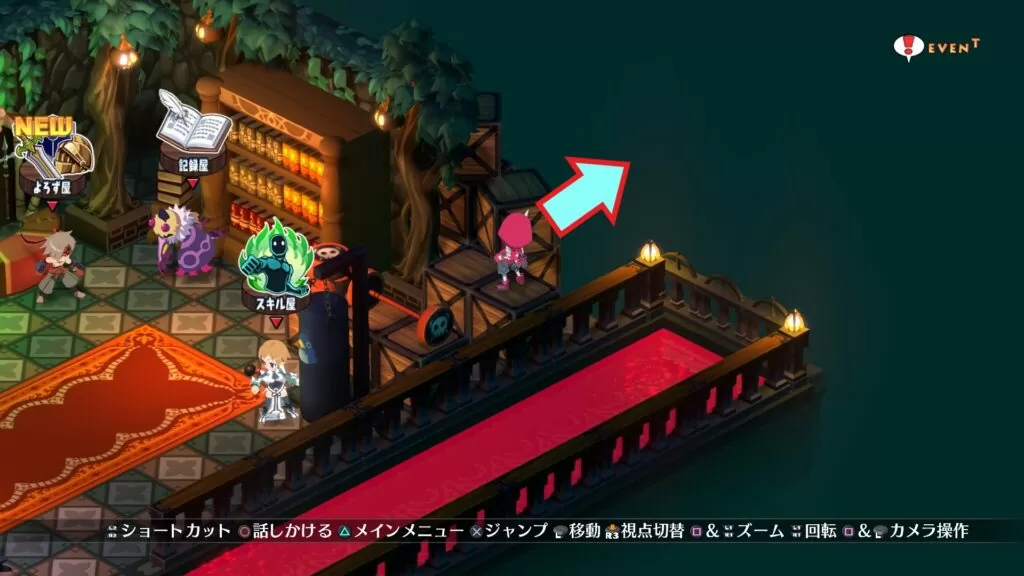 拠点の「四次元魔界」でスキル屋の奥にある木箱の先から、マップの外側に出ることができる